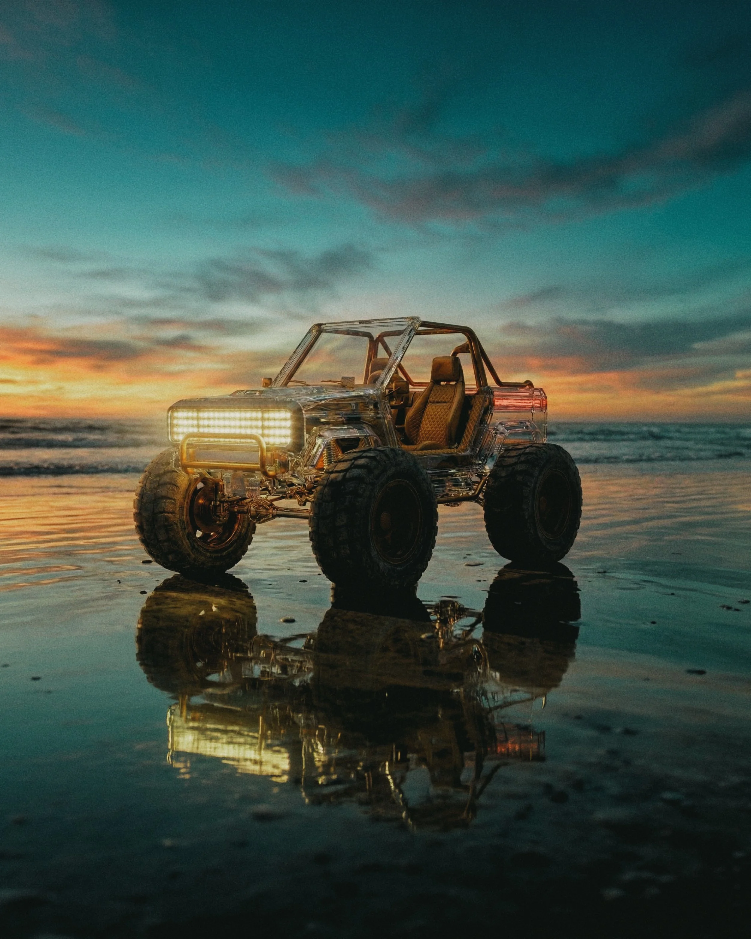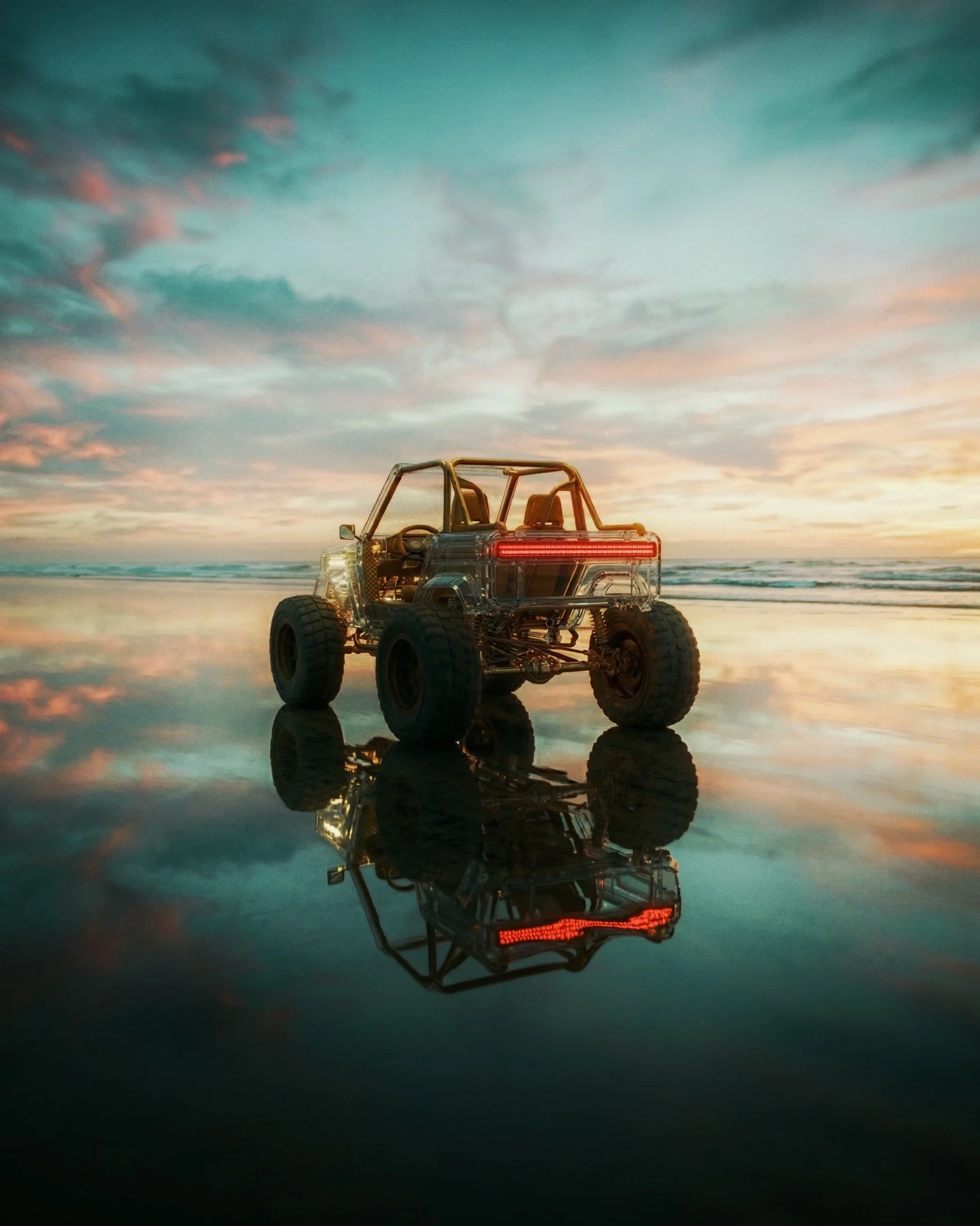 I designed this transparent beach truck by combining tools: ChatGPT for concept ideation, NanoBanana Pro for 3D modeling, and Photoshop for textures. Using Snapseed, I fine-tuned lighting and details, crafting a bold, open-structure vehicle ready to explore the beach.