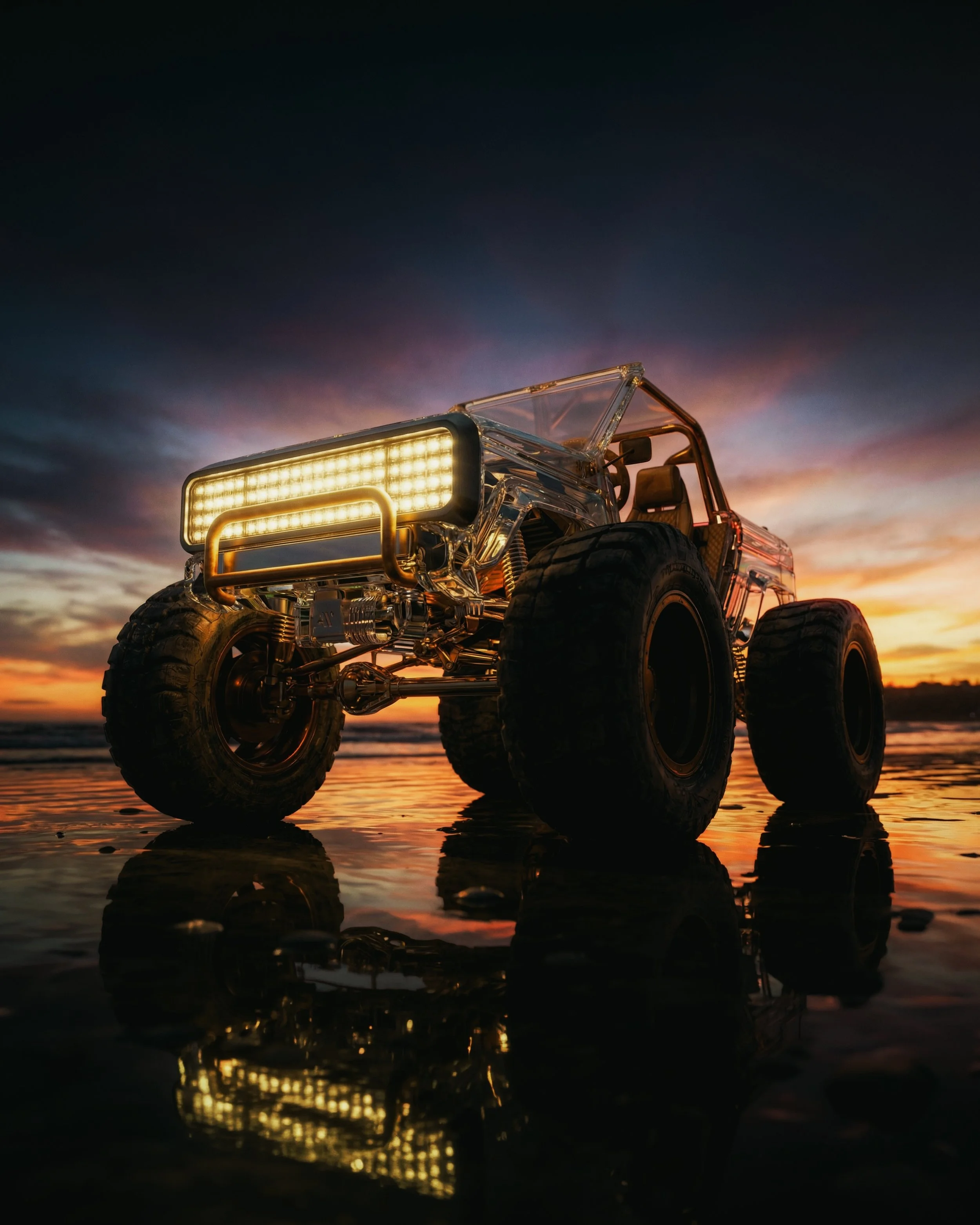 This project marks the beginning of my AI journey. Inspired by a Jeep I drove last summer in Mexico, I reimagined it as a crystal structure, set on the moon in an otherworldly landscape. This is my first AI creation, featuring cinematic angles and hyper-realistic detail, capturing a world that only exists in imagination.